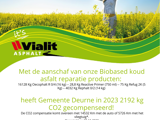 In 2022 heeft de gemeente Deurne 11.520 kg Biobased Oecophalt bestelt en daarmee 1.069 kg CO2 gecompenseerd!