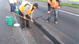 Tijdens de reparatie vloeit het scheur of gat volledig dicht door het vloeibare karakter van het asfalt.